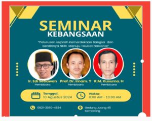 “Kami mengajak semua untuk bisa hadir. Seninar nasional ini terbuka untuk umum, karena membahas hal terkait bangsa dan negara, semua boleh ikut. Selain boleh hadir langsung, kita siarkan juga secara live streaming,” aku Agus Zaenal Ketua Panitia Pelaksana. Jum’at (09/08/2024).